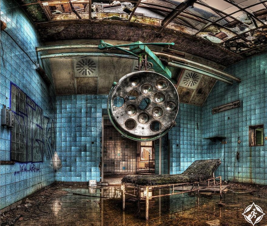 هذه الصورة المخيفة هي جزء من مجمع مستشفى بيليتز هيلستاتين ألمانيا، والتي تم بناءها في نهاية عام 1800، والتي تشتهر بمشاهدها المخيفة وجدرانها التي تغطيها ملامح الرعب، حتى أنك ستحبس أنفاسك بمجرد المرور عبر الأدوات الموجودة بها، وهي المكان الذي تلقى فيه أدولف هتلر علاجه بعد أن جرح ساقه في معركة السوم في عام 1916، وقد ظلت المستشفى تحت الحكم العسكري للاتحاد السوفيتي حتى عام 1995 .